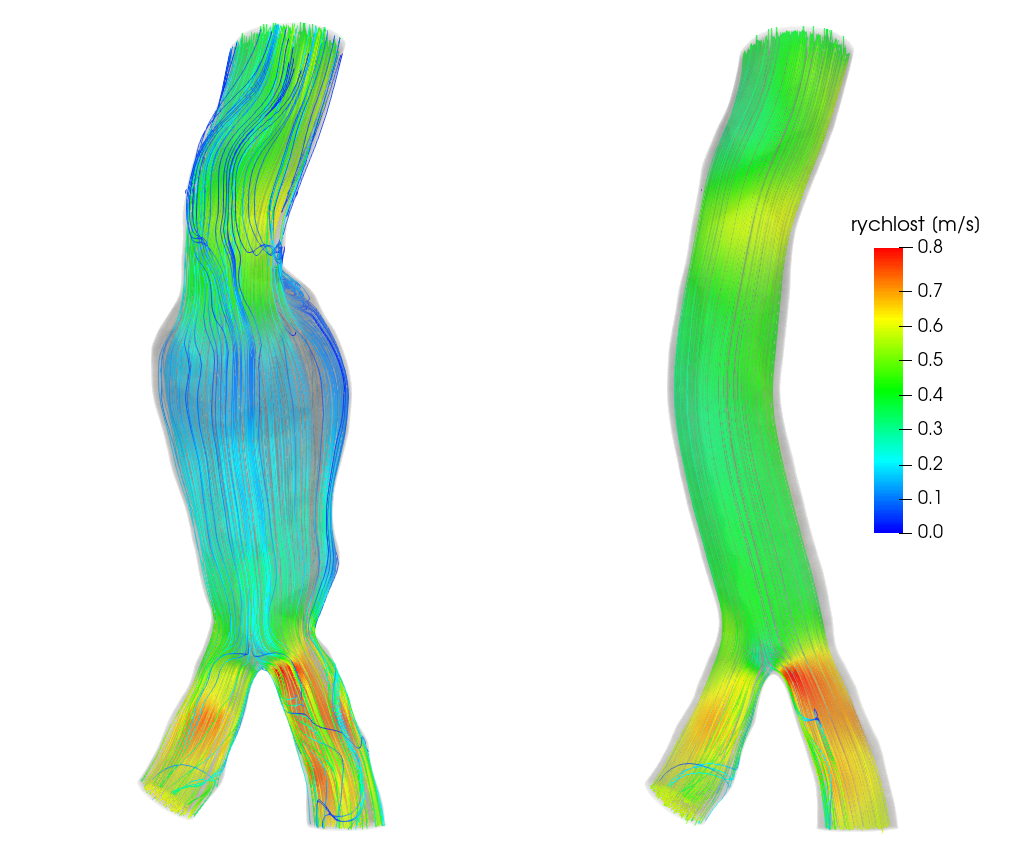 Reálný 3D model břišního aneurysmatu a aorty po po operaci